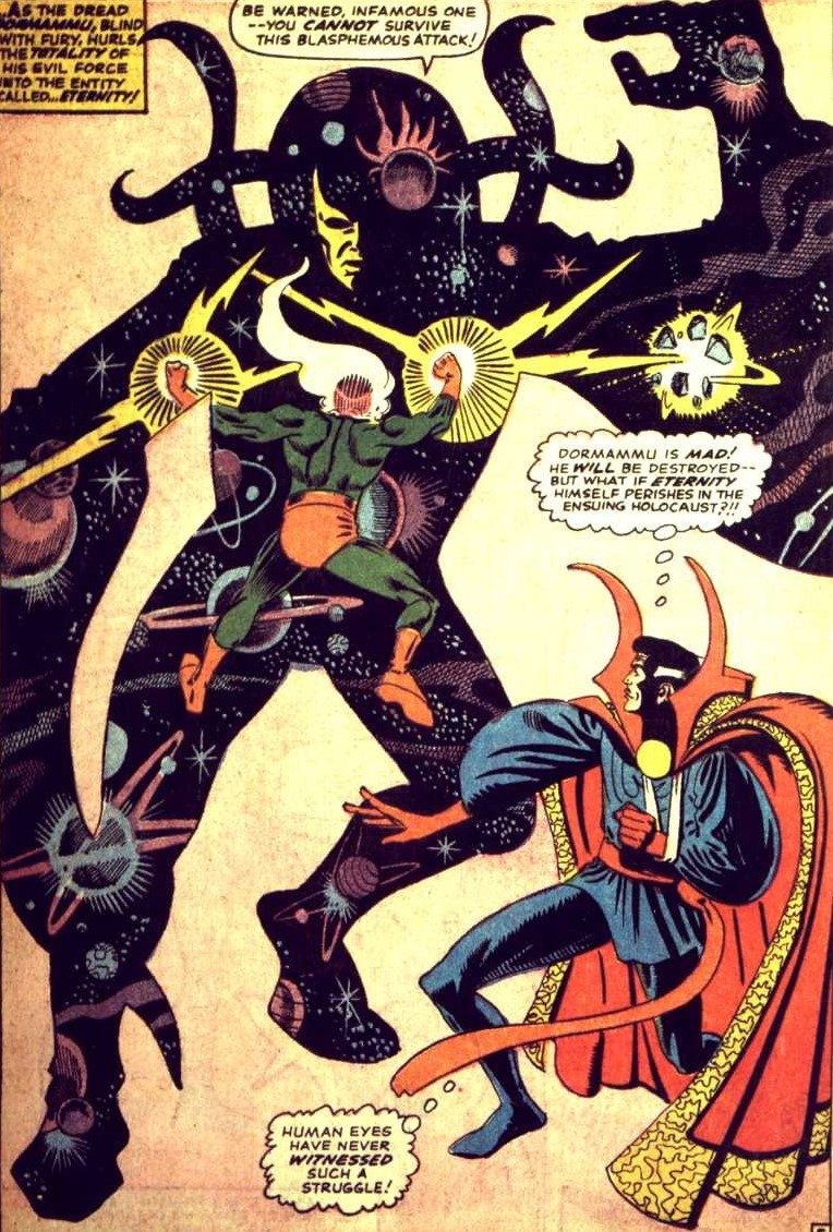 For when Eternity's actually present, it's probably the image of the Ancient One wrestling with him that has stuck with me the most. He was definitely a great concept in the old days. (I'm not sure we can really call Eternity a character.)