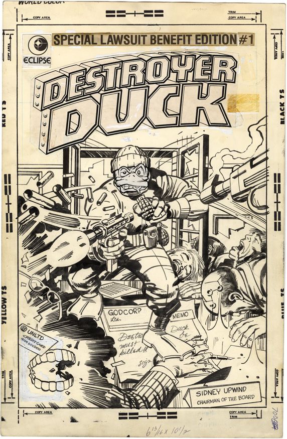 The debut story is about that struggle directly and hilariously as we meet Duke Duck, an ally of the "Little Guy", a small duck who gets sucked into a distant dimension where he is exploited and killed by Godcorp Ltd., a soulless organization which lives up to its credo of "Grab it all! Own it all! Drain it all!" (Remind you of anyone we know?) Duke ends up going to this other world and kicks some Godcorp butt.