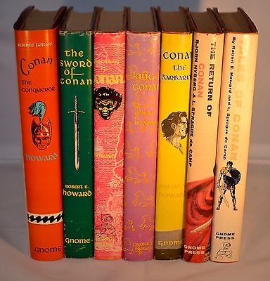 I've been reading up on the publishing history of Robert E. Howard's Conan and while doing so discovered all over again the lovely Gnome Press editions of the stories which appeared in the 1950's. The first appeared in 1950 and the final volume in 1957. These are the stories as reorganized and to some extent re-imagined by L. Sprague De Camp. They quit doing them for a very simple reason, they ran out of Conan stories, so the last one is a bit of fan fiction by Bjorn Nyberg with additions and adjustments by De Camp. The famous Lancer paperbacks which ignited the Conan craze in the 1960's were mostly just reprints of the material first organized in these handsome tomes.